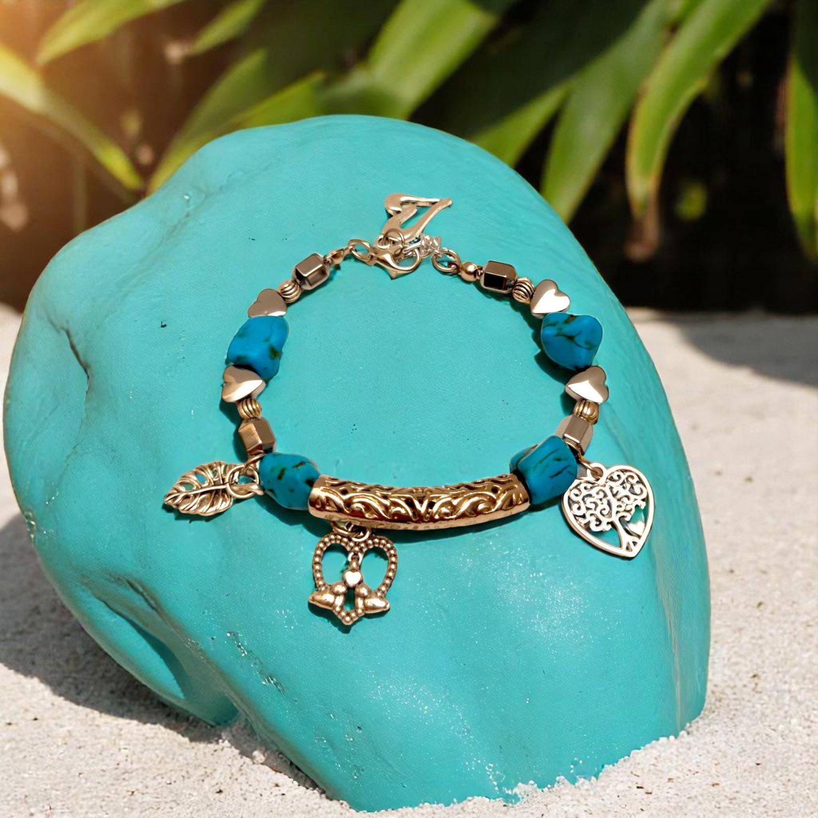 🪙 Material: Turquoise howlite, alloy charms, gold-tone accents