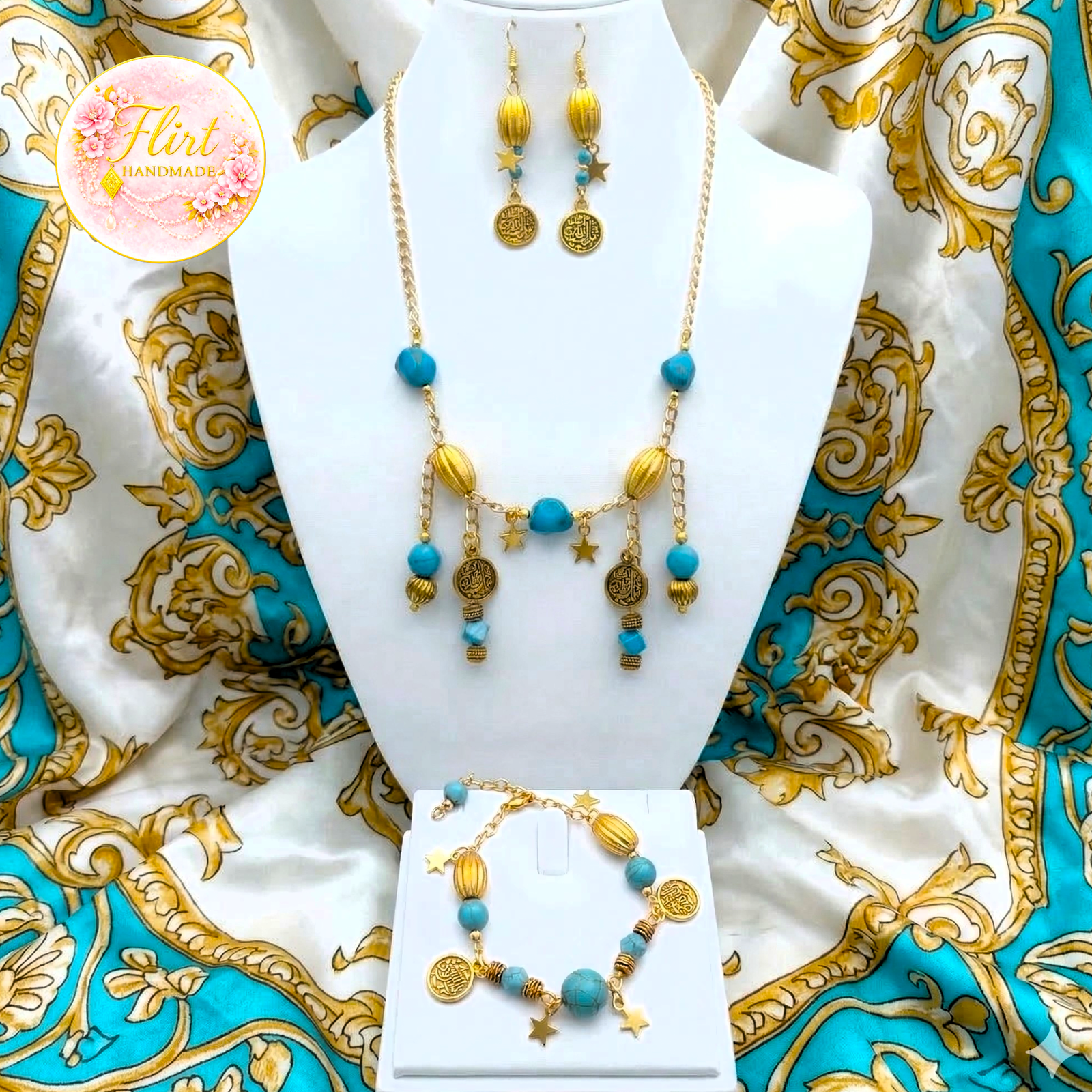 What makes this set truly special is its subtle reflection of Arab heritage, seen in the intricate details, symbolic charms, and timeless design elements that celebrate culture with a modern, elegant twist.