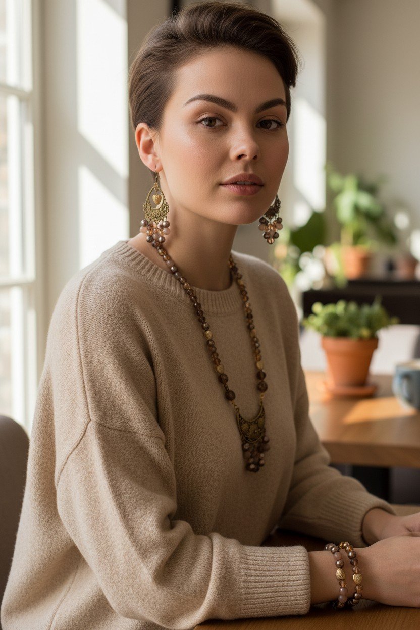 Every element is carefully chosen and assembled by hand, making each set truly unique — no mass production, no replicas. The Mocha Heart Set transitions beautifully from daytime sophistication to evening warmth, pairing effortlessly with neutral outfits, soft fabrics, and earthy palettes.