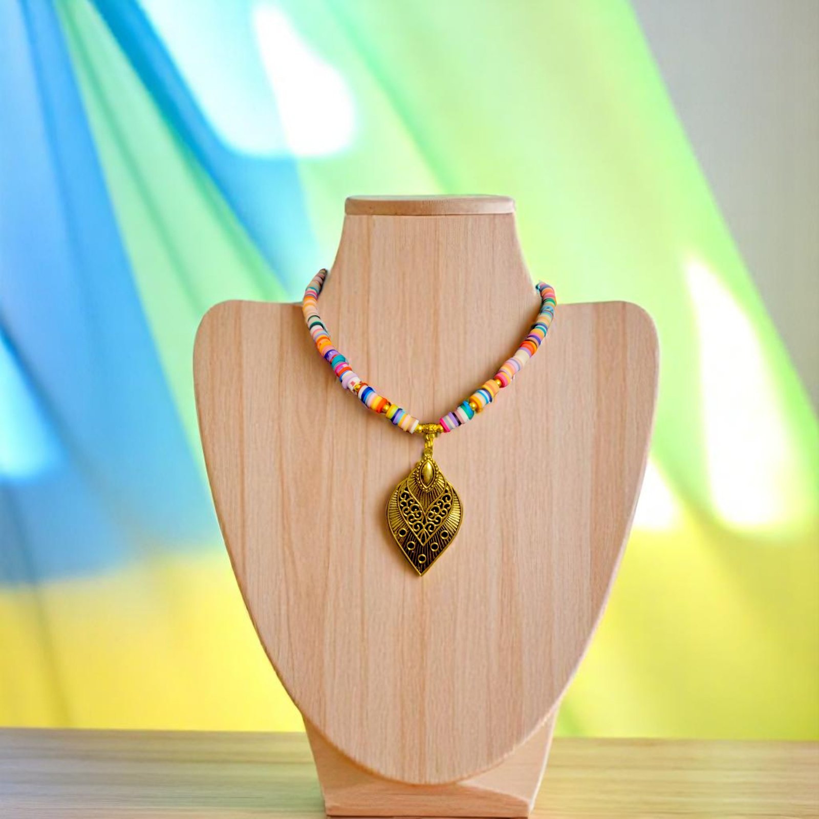 🌈 Striking Design: With rainbow-toned heishi beads and a statement gold-toned leaf pendant, this set reflects joy, heritage, and bold expression.