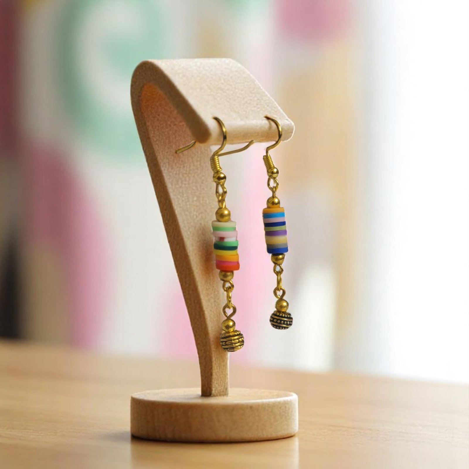 🪙 Material: Polymer clay beads, gold-toned brass pendant, gold-tone hematite, brass dangles, and gold-toned alloy chain extension.