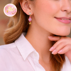 Elegant mini drop earrings with a blush-toned jade bead, sparkling pink cubic crystals, and a subtle gold star detail—dainty, lightweight, and effortlessly charming. 💕